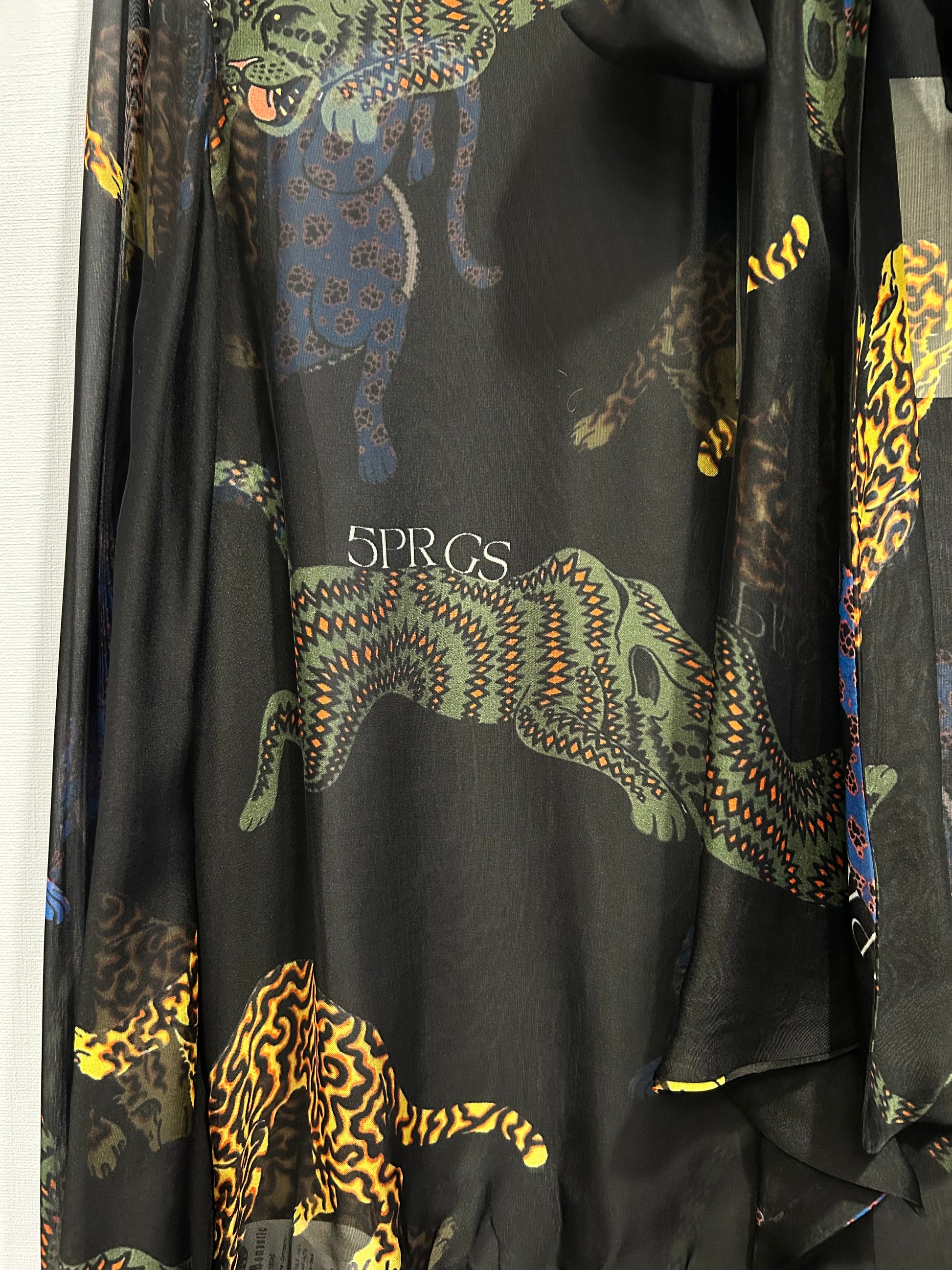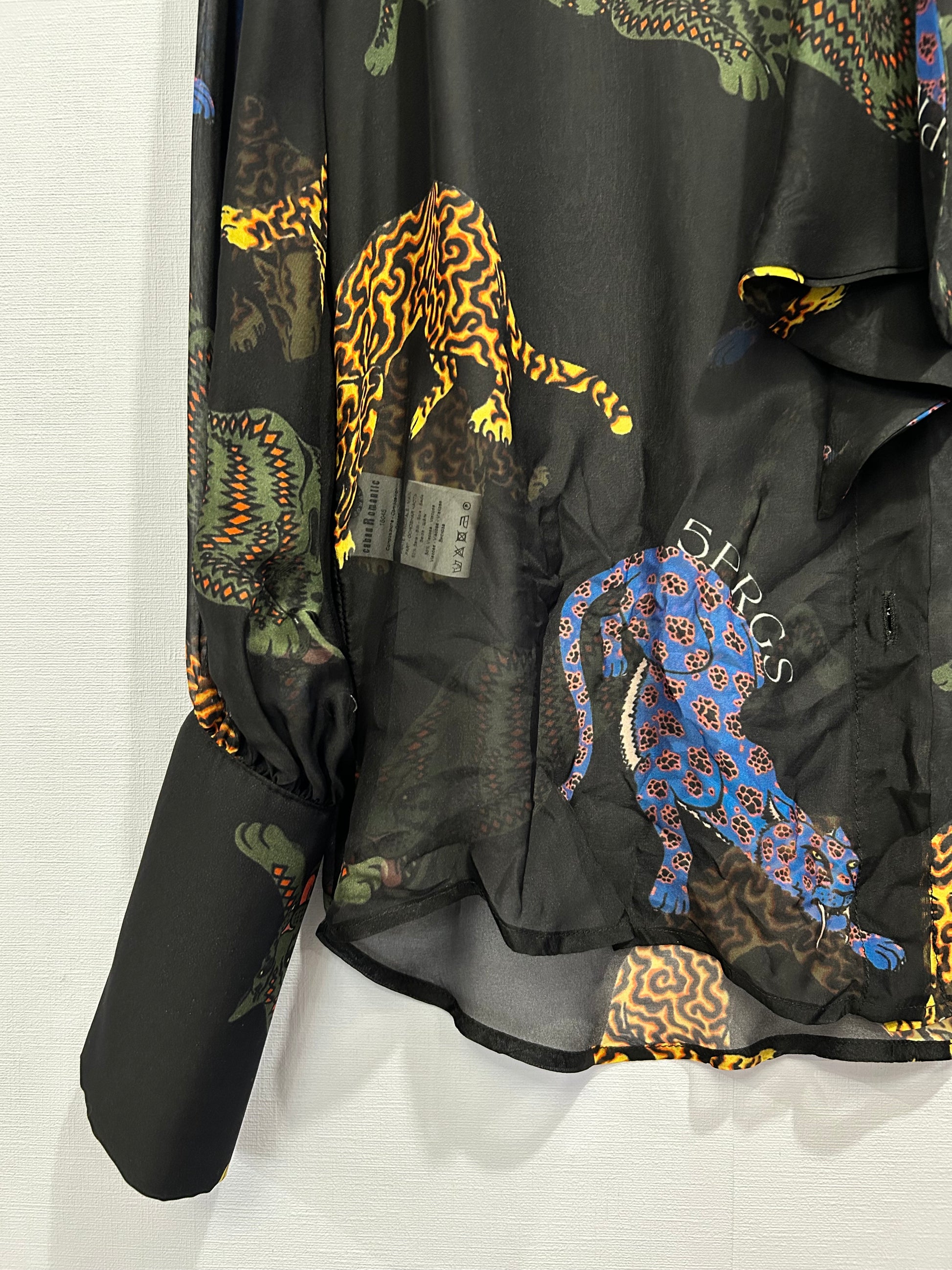 Camicia 5 Progress in seta e viscosa, stampata tribal Panther, taglio classico, fiocco al collo