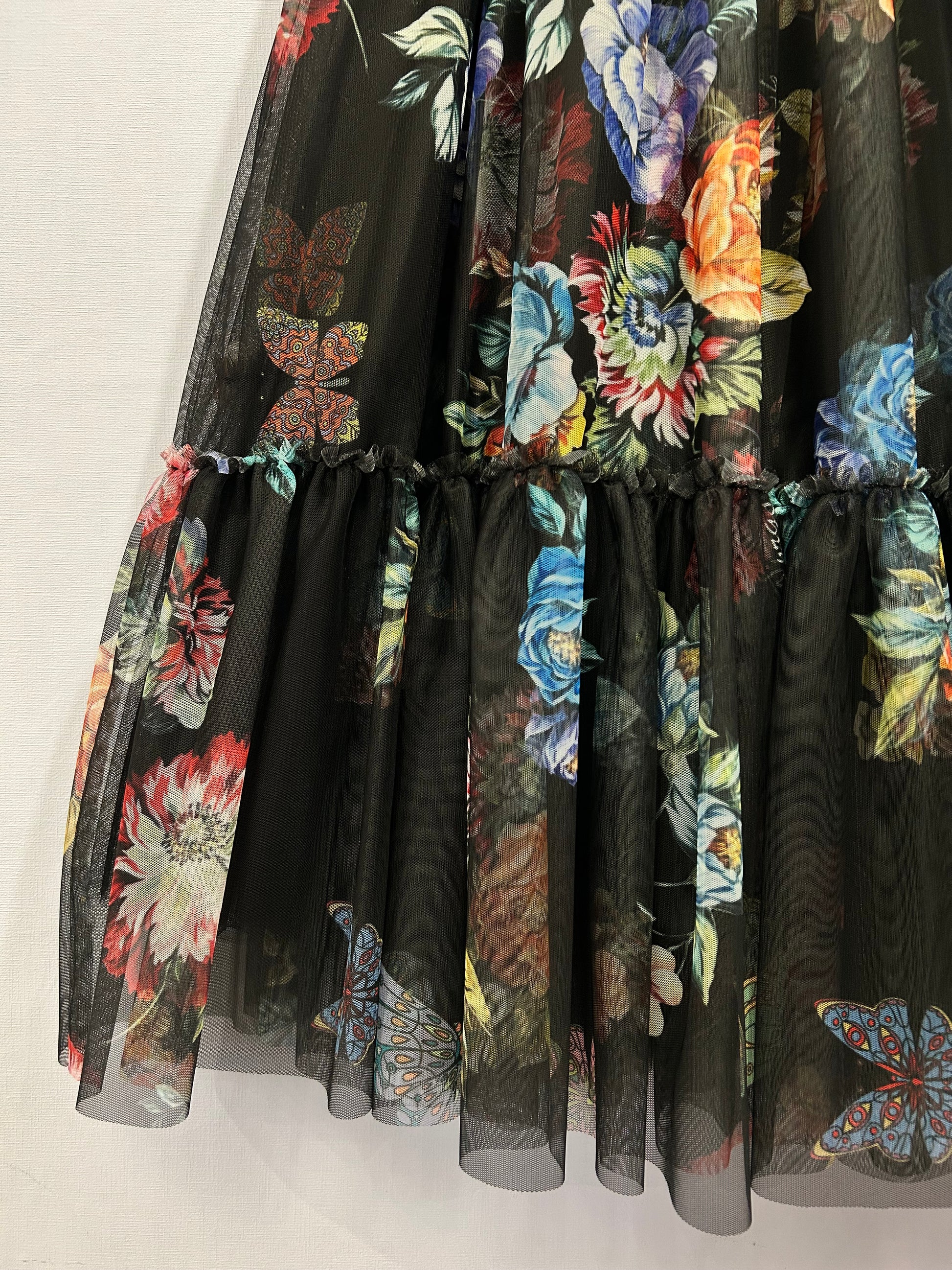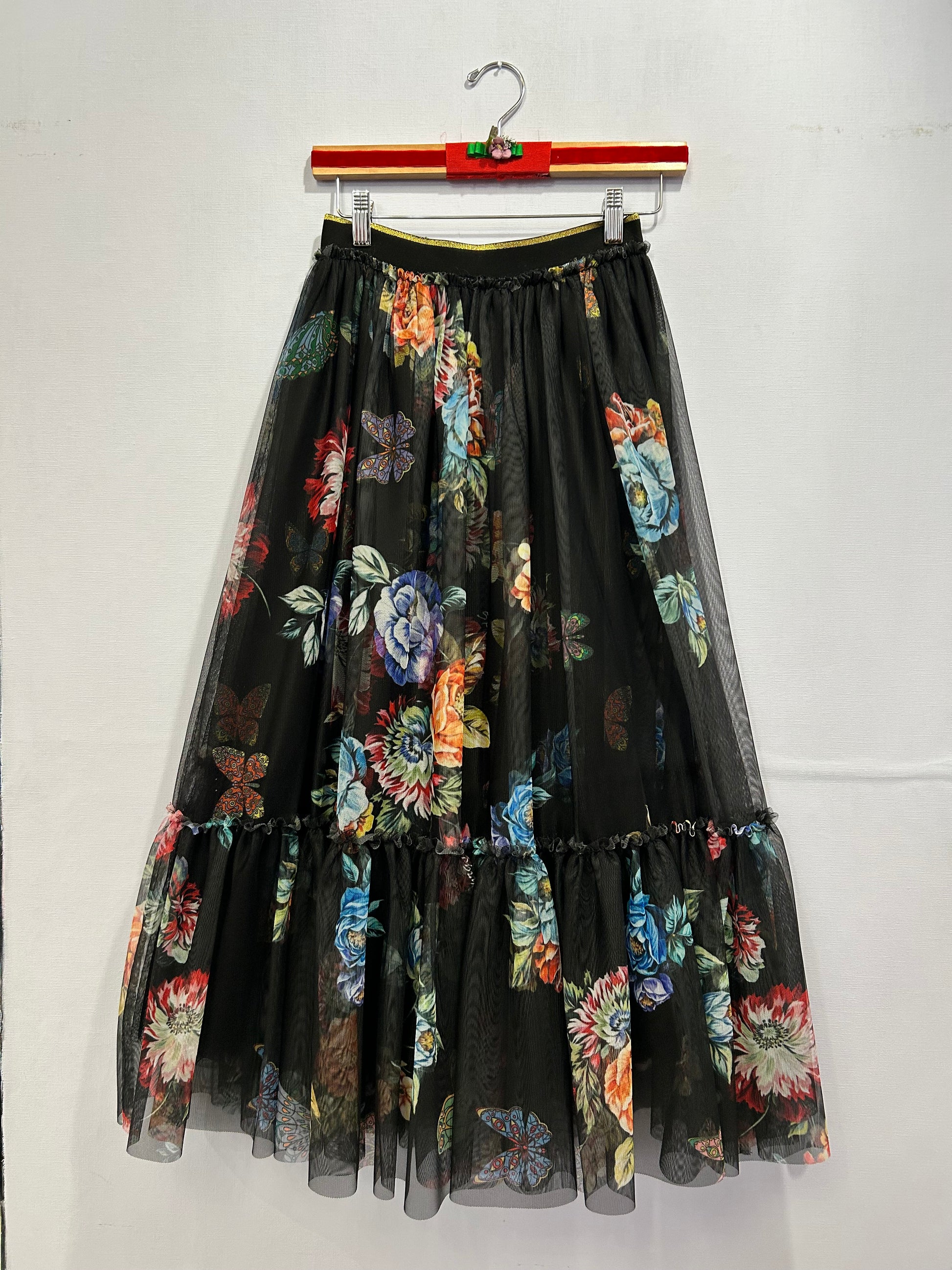 Gonna in tulle stampato della 5 Progress, elastico in vita, arricchita da più balze di tessuto